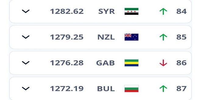 تقدم منتخب سوريا بكرة القدم للرجال مركزين في التصنيف الشهري الأخير للفيفا، ليحتل المركز الـ 84 عالمياً، والمركز الحادي عشر عربياً.