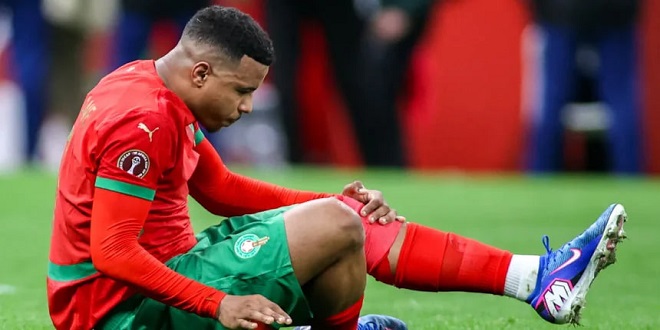 وجاءت إصابة المهاجم المغربي في المباراة النهائية التي خاضها منتخب بلاده أمام نظيره السنغالي بنهائي أمم أفريفيا، وخسرها 0-1.