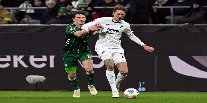 حقق هوفنهايم فوزاً مستحقاً على مضيفه فيردر بريمن بنتيجة 2-0، في مباراة مؤجلة من المرحلة الـ 16 من الدوري الألماني.