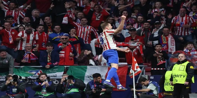 وصعد أتليتيكو مدريد إلى ثمن النهائي عقب فوزه الكبير على ضيفه كلوب بروج بأربعة أهداف مقابل هدف في إياب الملحق.