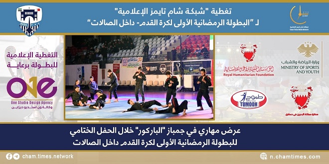 وشهد الحفل الختامي للبطولة الرمضانية الأولى لكرة القدم داخل الصالات عرضاً مهارياً في جمباز الباركور أشعل أجواء الصالة.