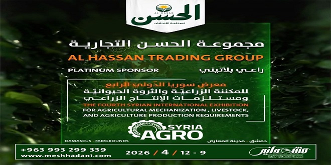 “مجموعة الحسن التجارية” الراعي البلاتيني لـ معرض سوريا الدولي الرابع للمكننة الزراعية والثروة الحيوانية ومستلزمات الإنتاج الزراعي “آغرو سيريا”