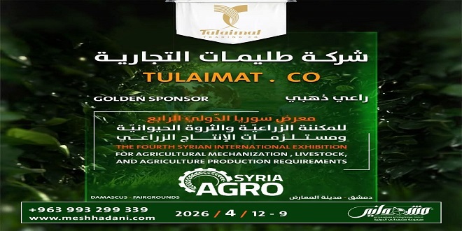 “طليمات التجارية” الراعي الذهبي لـ معرض سوريا الدولي الرابع للمكننة الزراعية والثروة الحيوانية ومستلزمات الإنتاج الزراعي “آغرو سيريا”