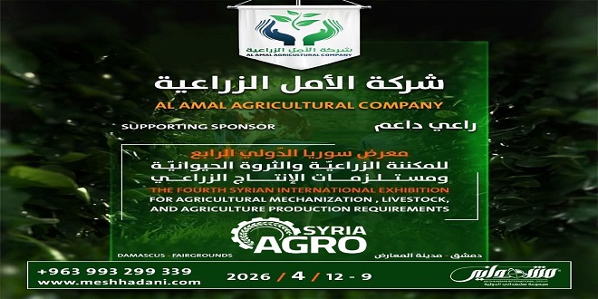 “الأمل الزراعية” الراعي الداعم لـ معرض سوريا الدولي الرابع للمكننة الزراعية والثروة الحيوانية ومستلزمات الإنتاج الزراعي “آغرو سيريا”