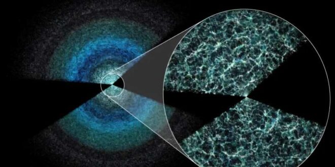 وذكر موقع “Phys.org” المتخصص في نشر الأخبار العلمية والفلك ،أول أمس، أن جهاز مطيافية الطاقة المظلمة DESI أنهى أول مسح شامل للسماء ليلاً، منتجاً خريطة عالية الدقة تُعد الأوسع من نوعها، حيث وُضعت الأرض في مركزها وتمثل كل نقطة فيها مجرة.