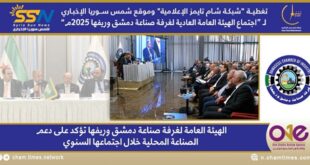 أكمل القراءة »الهيئة العامة لغرفة صناعة دمشق وريفها تؤكد على دعم الصناعة المحلية خلال اجتماعها السنوي