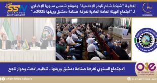 أكمل القراءة »حضور إعلامي واسع يشهده الاجتماع السنوي لغرفة صناعة دمشق وريفها