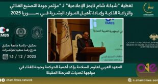شام تايمز – خاص تحت شعار “سوريا تستحق”.. أقامت شركة “EMBS Group” مؤتمر جودة التصنيع الغذائي والزراعة الذكية وإعادة تأهيل الموارد البشرية في سوريا، برعاية …