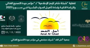 شام تايمز- خاص شاركت جمعية “أمل الغد” كـ شريك مجتمعي في مؤتمر جودة التصنيع الغذائي والزراعة الذكية وإعادة تأهيل الموارد البشرية في سوريا، والذي أقامته …