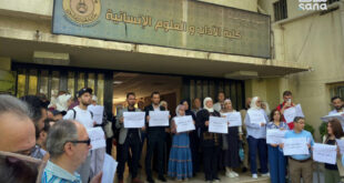 شهدت كلية الآداب والعلوم الإنسانية في جامعة دمشق ،اليوم الاثنين، وقفة تضامنية بمشاركة الكوادر التدريسية والإدارية والطلابية، تأكيداً على ضرورة حماية الكوادر الأكاديمية والإدارية داخل الحرم الجامعي، …