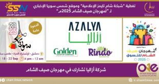 شام تايمز – خاص تشارك شركة “أزاليا” في مهرجان صيف الشام للتسوق 2025 والذي ينطلق في 18 ويستمر لمدة خمسة أيام حتى 22 أيلول من …