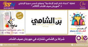 شام تايمز – خاص تشارك شركة “بن الشامي” في مهرجان صيف الشام للتسوق 2025 والذي ينطلق في 18 ويستمر لمدة خمسة أيام حتى 22 أيلول …
