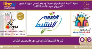 شام تايمز – خاص تشارك شركة ” النشيط” في مهرجان صيف الشام للتسوق 2025 والذي ينطلق في 18 ويستمر لمدة خمسة أيام حتى 22 أيلول …