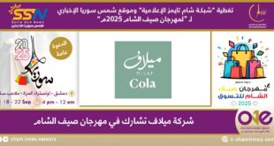 شام تايمز – خاص تشارك شركة “ميلاف كولا” في مهرجان صيف الشام للتسوق 2025 والذي ينطلق في 18 ويستمر لمدة خمسة أيام حتى 22 أيلول …